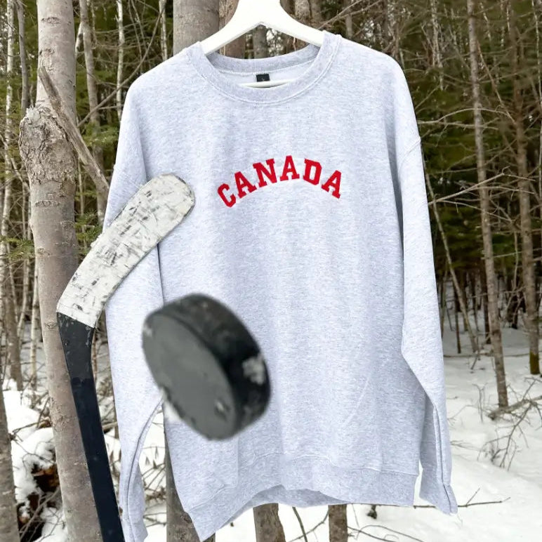 Stay warm and show off your Canadian pride with our cozy Canada Sweatshirt! Embroidered with "CANADA" in bold, varsity lettering on a Gildan sweatshirt (a proudly Canadian brand), this piece is designed for comfort and everyday wear. Each sweatshirt is carefully embroidered by our small Canadian business, so when you shop this look, you're supporting local and keeping your love for Canada close to heart. Whether you're exploring the outdoors or relaxing at home, you can rep Canada in style—and even match your pup for the ultimate patriotic look! ❤️