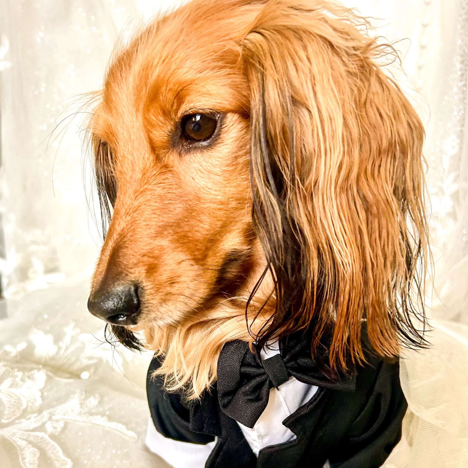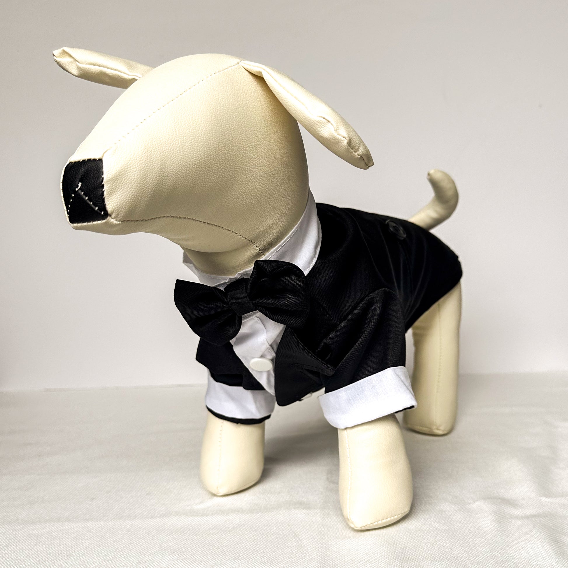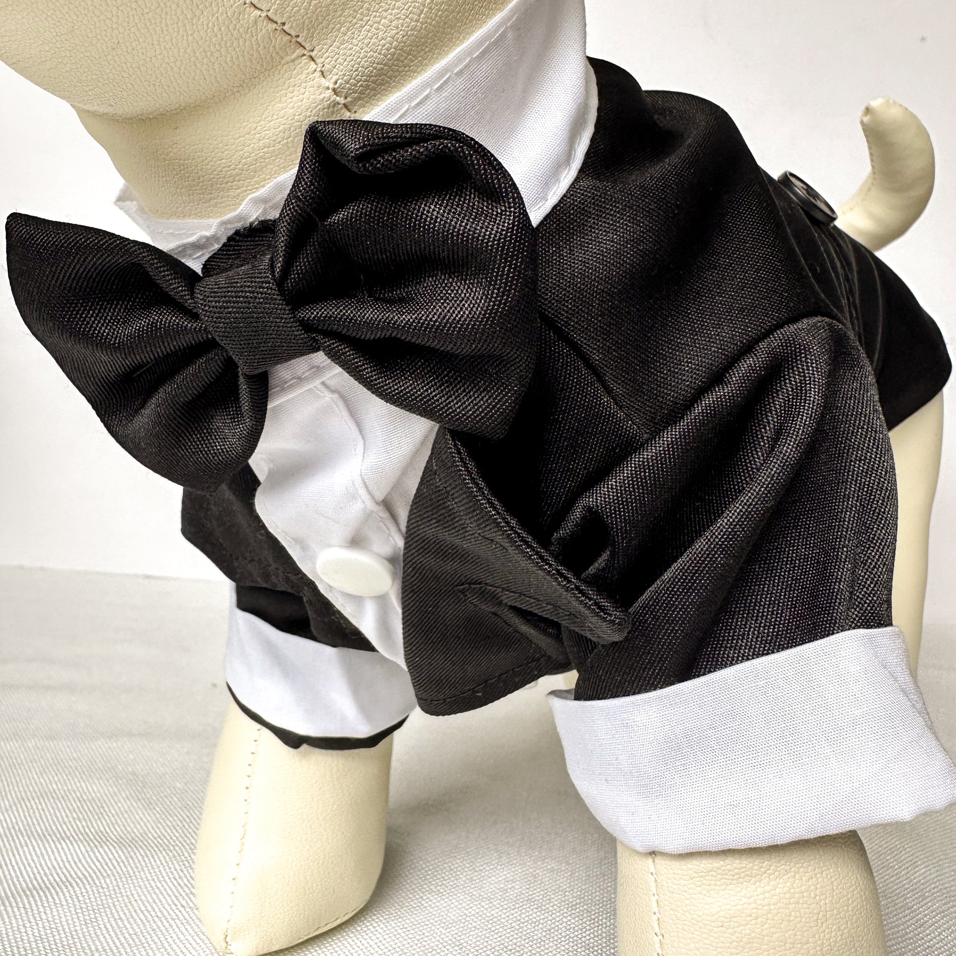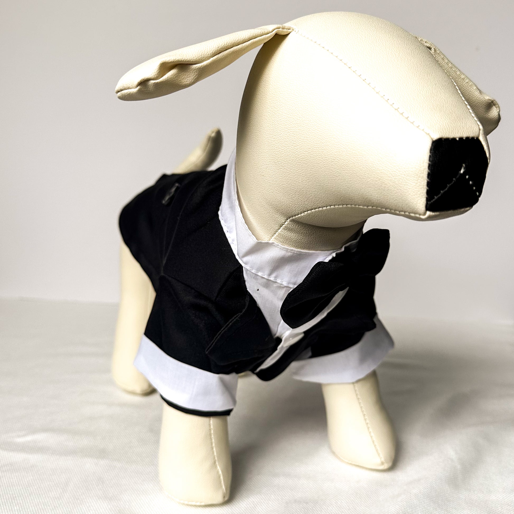 Introducing the Classic Black Tuxedo, a symbol of enduring style and grace for your special pup. Tailored for those exceptional events, this sleek, one-piece suit in jet black offers a hassle-free snap closure for quick dressing. Your canine companion will exude refined charm, leaving a lasting impression. Perfectly suited for small dogs, this tuxedo ensures your pet looks impeccably dapper on any special occasion. This product is most suitable for small dogs.